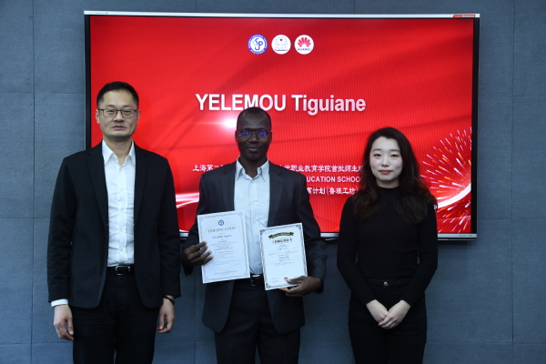 最后,丁力与赵慧迪为纳兹博尼大学受训师生颁发了上海第二工业大学培训结业证书和华为培训证书。